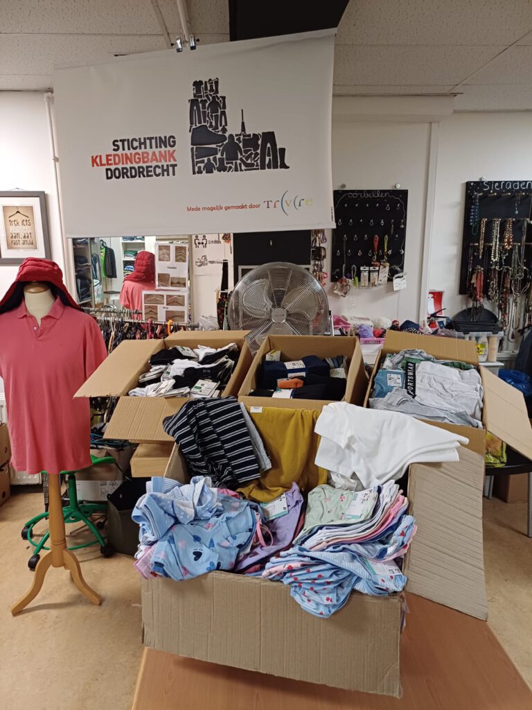 Vier dozen met nieuwe sokken en ondergoed voor onze cliƫnten.